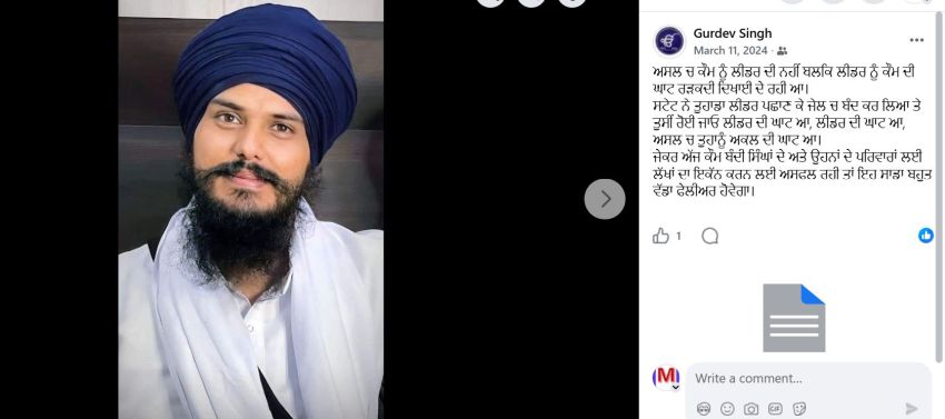 (ਸੰਪਾਦਕ ਵਲੋਂ) ਕੋਈ ਵੀ ਵਿਆਕਤੀ ਕਦੀ ਵੀ ਗਲਤੀ ਰਹਿਤ ਨਹੀਂ ਹੋ ਸਕਦਾ। ਹਰ ਇੱਕ ਵਿਆਕਤੀ ਗਲਤੀ ਕਰ ਸਕਦਾ ਹੈ। ਜਦੋਂ ਕੋਈ ਵਿਆਕਤੀ ਗਲਤੀ ਕਰਦਾ ਹੈ ਤਾਂ ਉਸ ਗਲਤੀ ਦਾ ਖਮਿਆਜਾ ਉਸ ਨੂੰ ਆਪ ਨੂੰ ਜਾਂ ਪਰਵਾਰ ਨੂੰ ਝੱਲਣਾਂ ਪੈਂਦਾ ਹੈ। ਜੇ ਕਰ ਪਿੰਡ ਦਾ ਸਰਪੰਚ ਕੋਈ ਗਲਤੀ ਕਰੇ ਤਾਂ ਉਸ ਦਾ ਖਮਿਆਜਾ ਸਾਰੇ ਪਿੰਡ ਨੂੰ ਭੁਗਤਣਾ ਪੈਂਦਾ ਹੈ। ਜੇ ਕਰ ਕਿਸੇ ਸੂਬੇ ਦਾ ਮੁੱਖ ਮੰਤਰੀ ਗਲਤੀ ਕਰੇ ਤਾਂ ਉਸ ਦਾ ਅਸਰ ਸਾਰੇ ਸੂਬੇ ਦੇ ਲੋਕਾਂ ਤੇ ਹੁੰਦਾ ਹੈ। ਜੇ ਕਰ ਕਿਸੇ ਦੇਸ਼ ਦਾ ਮੁੱਖੀ ਗਲਤੀ ਕਰੇ ਤਾਂ ਉਸ ਦਾ ਖਮਿਆਜਾ ਸਾਰੇ ਦੇਸ਼ ਨੂੰ ਭੁਗਤਣਾ ਪੈਂਦਾ ਹੈ। ਕਈ ਵਾਰੀ ਤਾਂ ਸਾਰੀ ਦੁਨੀਆ ਨੂੰ ਹੀ ਭੁਗਤਣਾ ਪੈਂਦਾ ਹੈ। ਜਿਸ ਤਰ੍ਹਾਂ ਹੁਣ ਭੁਗਤਣਾ ਪੈ ਰਿਹਾ ਹੈ। ਕਿਉਂਕਿ ਅਮਰੀਕਾ ਸਾਰੀ ਦੁਨੀਆ ਵਿਚੋਂ ਤਾਕਤਵਰ ਦੇਸ਼ ਹੈ। ਜਿਸ ਦੇ ਬਹੁਤ ਸਾਰੇ ਕਾਰਨ ਹਨ ਪਰ ਅਸੀਂ ਉਸ ਪਾਸੇ ਨਹੀਂ ਜਾਣਾ। ਪਹਿਲਾਂ ਤਾਂ ਟਰੰਪ ਨੇ ਸਾਰੀ ਦੁਨੀਆ ਤੇ ਟੈਰਫ ਲਾ ਕੇ ਸਾਰੀ ਦੁਨੀਆ ਨੂੰ ਤੰਗ ਕੀਤਾ ਹੁਣ ਇਰਾਨ ਨਾਲ ਲੜਾਈ ਛੇੜ ਕੇ ਕਰ ਰਿਹਾ ਹੈ ਜਿਸ ਦਾ ਸਾਰੀ ਦੁਨੀਆ ਦੀ ਇਕਾਨਮੀ ਤੇ ਪ੍ਰਭਾਵ ਪੈ ਰਿਹਾ ਹੈ। ਇਸੇ ਤਰ੍ਹਾਂ ਕਿਸੇ ਕੌਮ ਦੇ ਲੀਡਰ ਦੀ ਗਲਤੀ ਦਾ ਖਮਿਆਜਾ ਸਾਰੀ ਕੌਮ ਨੂੰ ਭੁਗਤਣਾ ਪੈਂਦਾ ਹੈ। ਜਿਸ ਕਰਕੇ ਕਿਸੇ ਨੂੰ ਆਪਣਾ ਲੀਡਰ ਮੰਨਣ ਲਈ ਬਹੁਤ ਹੀ ਸੋਚ ਵਿਚਾਰ ਤੋਂ ਕੰਮ ਲੈਣਾ ਚਾਹੀਦਾ ਹੈ। ਪਰ ਅਫਸੋਸ ਨਾਲ ਕਹਿਣਾ ਪੈਂਦਾ ਹੈ ਕਿ ਜਿਹੜੇ ਗੁਰਬਾਣੀ ਨੂੰ ਸਮਝਦੇ ਹਨ ਉਹ ਵੀ ਕਈ ਵਾਰੀ ਭੀੜ ਦਾ ਰੁੱਖ ਦੇਖ ਕੇ ਜਾਂ ਕਿਸੇ ਮਜਬੂਰੀ ਵੱਸ ਗਲਤ ਲੀਡਰਾਂ ਦੀ ਹਾਂਮੀ ਭਰਨ ਲੱਗ ਜਾਂਦੇ ਹਨ। ਜਿਸ ਰਸਤੇ ਤੇ ਪਹਿਲਾਂ ਚੱਲ ਕੇ ਪੰਜਾਬ ਅਤੇ ਸਮਾਜ ਦਾ ਨੁਕਸਾਨ ਹੋ ਚੁੱਕਾ ਹੈ ਫਿਰ ਉਸੇ ਰਸਤੇ ਵੱਲ ਦੁਬਾਰਾ ਜਾਣਾ ਬਹੁਤੀ ਅਕਲਮੰਦੀ ਵਾਲੀ ਗੱਲ ਨਹੀਂ ਕਹੀ ਜਾ ਸਕਦੀ। ਇਹ ਗੁਰਦੇਵ ਸਿੰਘ ਬਠਿੰਡਾ ਵੀ ਉਨ੍ਹਾਂ ਵਿਚੋਂ ਇੱਕ ਹਨ ਜਿਹੜੇ ਉਸੇ ਹੀ ਹਿੰਸਕ ਰਸਤੇ ਵੱਲ ਜਾਣ ਨੂੰ ਚੰਗਾ ਸਮਝਦੇ ਹਨ। ਇਸੇ ਕਰਕੇ ਇਹ ਅੰਮ੍ਰਿਤਪਾਲ ਵਰਗਿਆਂ ਨੂੰ ਆਪਣਾ ਲੀਡਰ ਮੰਨ ਕੇ ਬੈਠੇ ਹਨ। ਹੇਠਾਂ ਦੇਖੋ ਇਸ ਗੁਰਦੇਵ ਸਿੰਘ ਦੀ ਫੇਸਬੁੱਕ ਦਾ ਇੱਕ ਸਕਰੀਨ ਸ਼ੌਟ। ਸਾਰੀ ਦੁਨੀਆ ਵਿਚੋਂ ਮੈਨੂੰ ਹਾਲੇ ਤੱਕ ਇੱਕ ਹੀ ਸਿੱਖ ਬਾਰੇ ਜਾਣਕਾਰੀ ਹੈ ਜੋ ਕਿ ਗੁਰਮਤਿ ਨੂੰ ਸਮਝ ਕੇ ਸੱਚ ਬੋਲਦਾ ਹੈ। ਉਹ ਹੈ ਬਲਦੇਵ ਸਿੰਘ ਐਮ: ਏ: । ਉਹ ਸਾਰੇ ਕੂੜ ਗ੍ਰੰਥਾਂ ਨੂੰ ਵੀ ਰੱਦ ਕਰਦਾ ਹੈ ਅਤੇ ਫੁਕਰਿਆਂ ਨੂੰ ਵੀ ਗਲਤ ਕਹਿੰਦਾ ਹੈ। ਇਸੇ ਤਰ੍ਹਾਂ ਇੱਕ ਸਾਬਕਾ ਖਾਲਿਸਤਾਨੀ ਹੈ ਜਿਹੜਾ ਕਿ ਨਾ ਤਾਂ ਗੁਰਬਾਣੀ ਬਾਰੇ ਬਹੁਤਾ ਕੁੱਝ ਜਾਣਦਾ ਹੈ ਅਤੇ ਨਾ ਹੀ ਹੋਰ ਕੂੜ ਗ੍ਰੰਥਾਂ ਬਾਰੇ। ਜਦੋਂ ਉਹ ਗੁਰਮਤਿ ਦੀ ਕੋਈ ਗੱਲ ਕਰਦਾ ਹੈ ਤਾਂ ਬਹੁਤ ਸਾਰੀਆਂ ਗਲਤ ਗੱਲਾਂ ਕਰਦਾ ਹੈ। ਪਰ ਉਹ ਭਿੰਡਰਾਂਵਾਲੇ ਸਾਧ ਬਾਰੇ, ਦੀਪ ਸਿੱਧੂ ਬਾਰੇ ਅਤੇ ਅੰਮ੍ਰਿਤਪਾਲ ਬਾਰੇ ਬਿੱਲਕੁੱਲ ਠੀਕ ਗੱਲ ਕਰਦਾ ਹੈ। ਉਸ ਦਾ ਅਪਾਣਾ ਯੂ-ਟਿਊਬ ਚੈਨਲ ਹੈ (ਦਾ ਸੰਘਾ ਸ਼ੋਅ) ਜਿੱਥੇ ਉਹ ਇਨ੍ਹਾਂ ਨੂੰ ਠੀਕ ਕਹਿਣ ਵਾਲਿਆਂ ਨੂੰ ਵਿਚਾਰ ਚਰਚਾ ਕਰਨ ਲਈ ਸੱਦਦਾ ਹੈ ਪਰ ਜਾਂਦਾ ਕੋਈ ਨਹੀਂ ਜਿਹੜਾ ਦਲੀਲ ਨਾਲ ਵਿਚਾਰ ਕਰ ਸਕੇ। ਹੁਣ ਅਗਾਂਹ ਗੁਰਦੇਵ ਸਿੰਘ ਦੀ ਫੇਸਬੁੱਕ ਦਾ ਸਕਰੀਨ ਸ਼ੌਟ ਦੇਖੋ ਅਤੇ ਨਾਲ ਹੀ ਅਜਨਾਲੇ ਥਾਨੇ ਵਾਲੀ ਘਟਨਾ ਦੇਖੋ। ਫਿਰ ਉਸ ਤੋਂ ਬਾਅਦ ਮੇਰੇ ਵਲੋਂ ਲਿਖੀ ਗਈ ਚਿੱਠੀ ਅਤੇ ਗੁਰਦੇਵ ਸਿੰਘ ਵਲੋਂ ਉਸ ਦਾ ਜਵਾਬ ਪੜ੍ਹ ਲਿਓ।